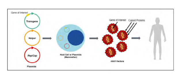 The host cell’s novel function is important because it enables the development of life-saving therapies. The viral capsid protein can be used to package and deliver transgenes to patients. The image below, from Regenxbio’s opening brief, depicts one aspect of the patented technology.